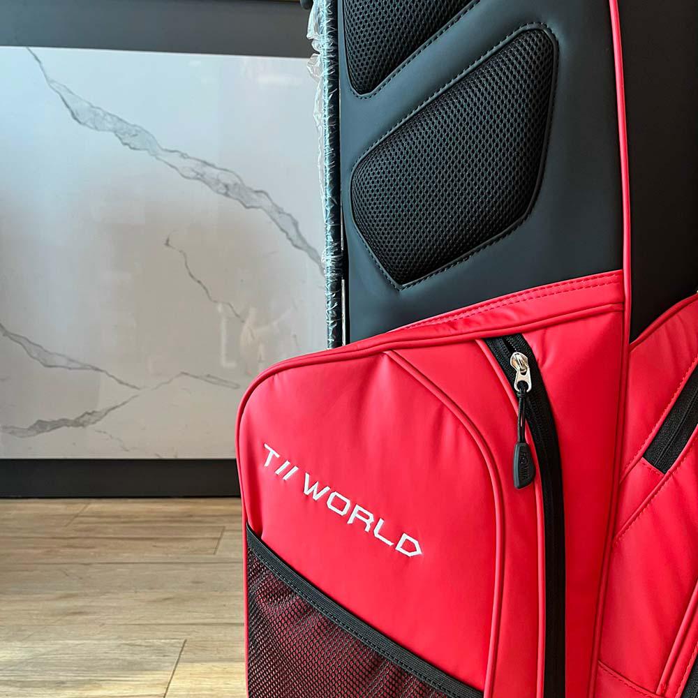 - Thiết kế ấn tượng cùng kiểu phối màu mảnh mẽ theo phong cách thời thượng phối với vải lưới dọc nổi thân túi làm điểm nhấn toát lên sự khỏe khoắn và mạnh mẽ của golfer.