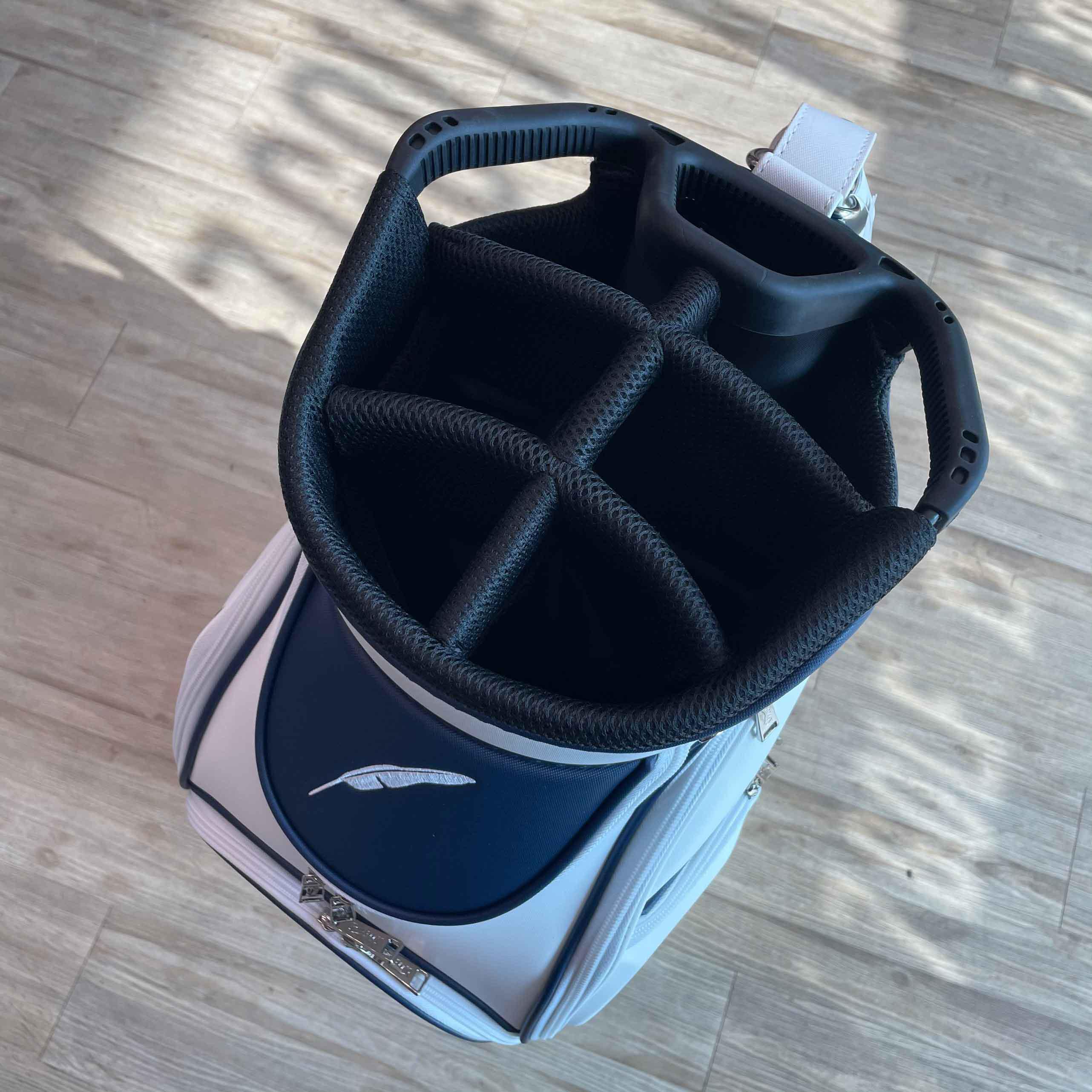 Với thông điệp 14 gậy là tốt nhất cho các golfer, túi golf đựng gậy Fourteen với thiết kế khung miệng chuyên dụng rộng rãi và lớp đệm an toàn, có thể đảm bảo đủ diện tích cho một bộ gậy golf chuẩn của các golfer. Túi còn có ngăn đựng chuyên dụng dành cho gậy Putter.