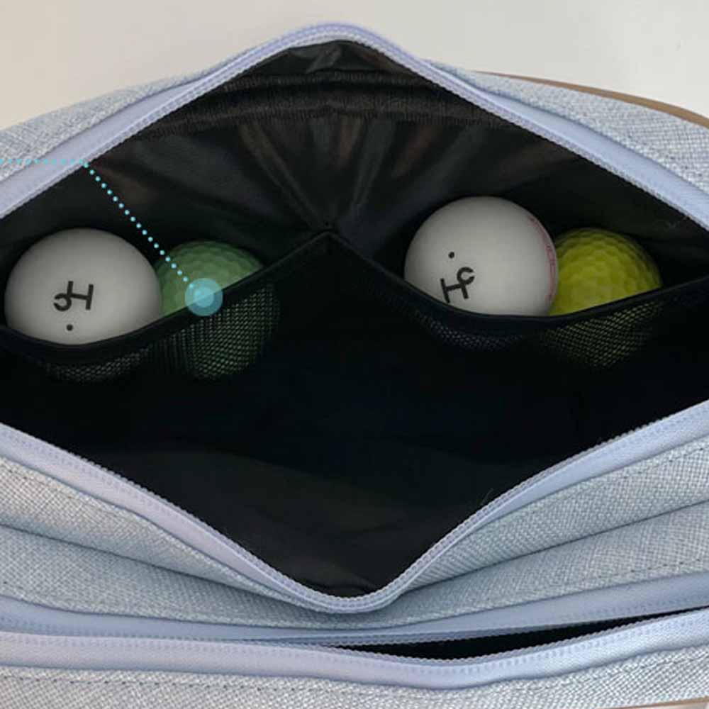 Với một túi rộng bên trong và hai túi lưới nhỏ hai bên, túi golf cầm tay Heal Creek mang đến không gian lưu trữ linh hoạt cho bạn. Bạn có thể tách đồ đạc một cách gọn gàng và hợp lý, từ mỹ phẩm cho đến thuốc lá và các vật dụng golf quan trọng.