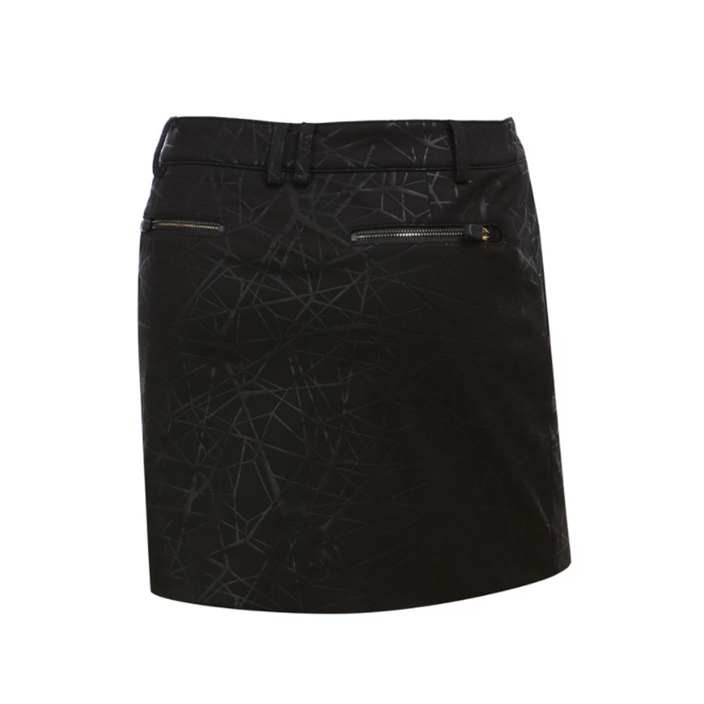 Váy golf nữ W.Angle với màu đen bí ẩn cùng hoa văn ánh vàng tạo cho người mặc thần thái sang trọng và quý phái. Phần thân váy ôm sát tạo nên sự chỉn chu, đường cong gợi cảm cho các nữ golfer. Thiết kế váy ngắn cạp eo tôn lên vẻ đẹp mỏng manh, quyến rũ nhưng vẫn nhẹ nhàng, kín đáo nhờ chi tiết quần may tinh tế bên trong váy.